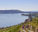Thanks to the influence of the nearby lakes, this gentle-hilled region possesses a moderate and airy climate, in which autumnal mists are quite frequent. The difference in soils from one vineyard to another is reflected in the numerous nuances of bouquet in the Chasselas wines.