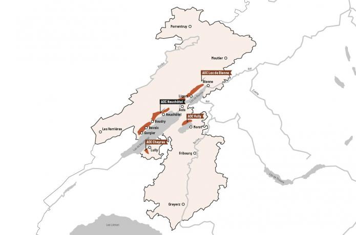 The vineyards located on the banks of Lake Neuchâtel account for the largest part of the production in this region. The vineyards stretch along the lake from Vaumarcus in the south to Cressier in the north. The other wines from the region (issued for the most part from the Chasselas and the Pinot Noir grapes) come from the vineyards bordering the Lakes of Bienne (canton of Bern) and of Morat (canton of Fribourg and Vaud).